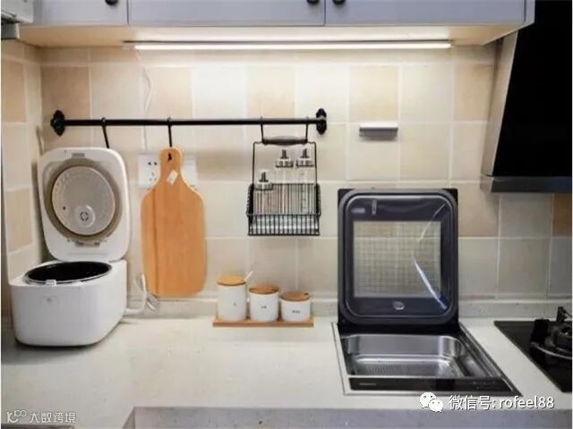 比起衣柜装灯,橱柜下装灯就不理智了,有点多余。只要人不是特别矮,橱柜下方的灯正好在眼前方,近距离灯光照射影响舒适度。厨房吊顶灯尽量亮点,或是光源分散点就可以了,不会影响厨房切配的。