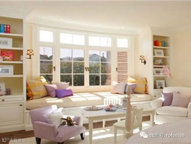 可以用低成本来扩大会客空间,要知道小户型的客厅如果利用好飘窗,那么就可以有效地扩大会客空间,既好看又实用。客厅除了添置一张主沙发以外,不需要再添置其他沙发或桌椅了,只需要在飘窗上铺上软垫和摆放一些靠枕,就变身成为可以招待亲朋好友的会客区了,而且其造价也比买沙发低上很多。怎么样?是不是很实用,比你家把飘窗用来堆放杂物好多了。