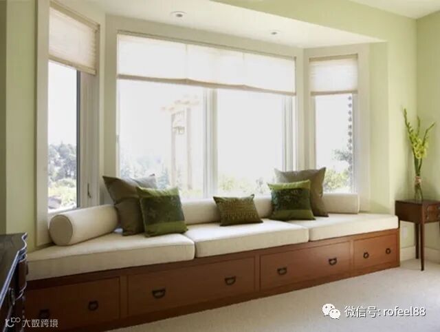 在飘窗装上抽屉或柜子,将杂物分门别类放好,既美观又实用,并且依然可以继续用作会客区或休闲区。