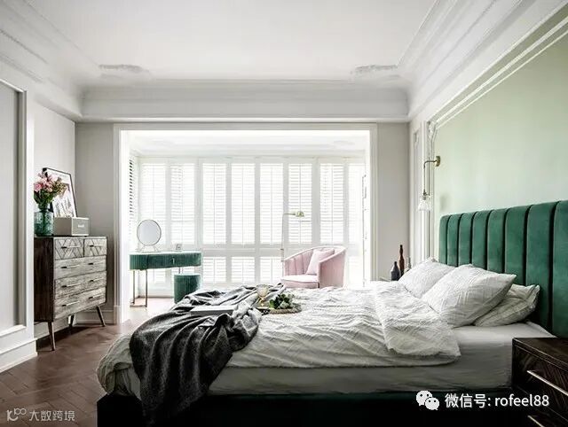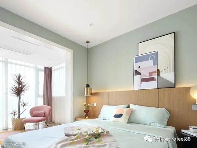 拉斐尔全屋定制告诉大家,如果你不打算把这个阳台做成封闭式的话,那么卧室与阳台之间的落地推拉门还是需要保留的,既能起到隔断作用,又最大程度保证了阳台外的景致和采光。