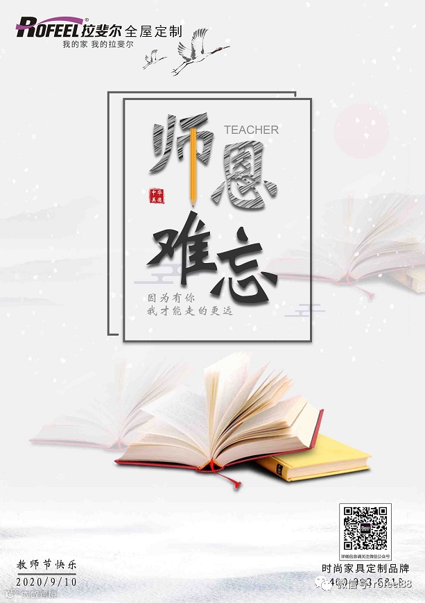 三尺讲台是您庄严神圣的舞台,两寸粉笔是您传道授业的执着,一生教诲是您解惑育人的奉献。教师节到了,拉斐尔全屋定制祝愿所有的老师,节日快乐!