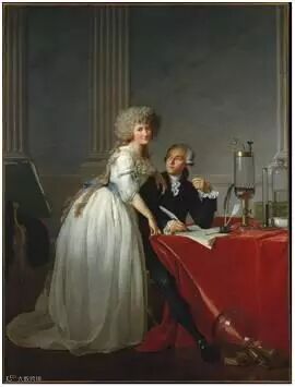 现代化学之父拉瓦锡和夫人(1788年)。我们不仅要关注拉瓦锡的美丽夫人,还要把更多目光投向他周围的玻璃实验器皿。