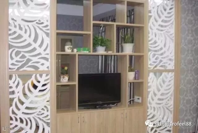 简洁朴素的电视柜隔断,搭配两扇白色雅净屏风,十分养眼怡人。