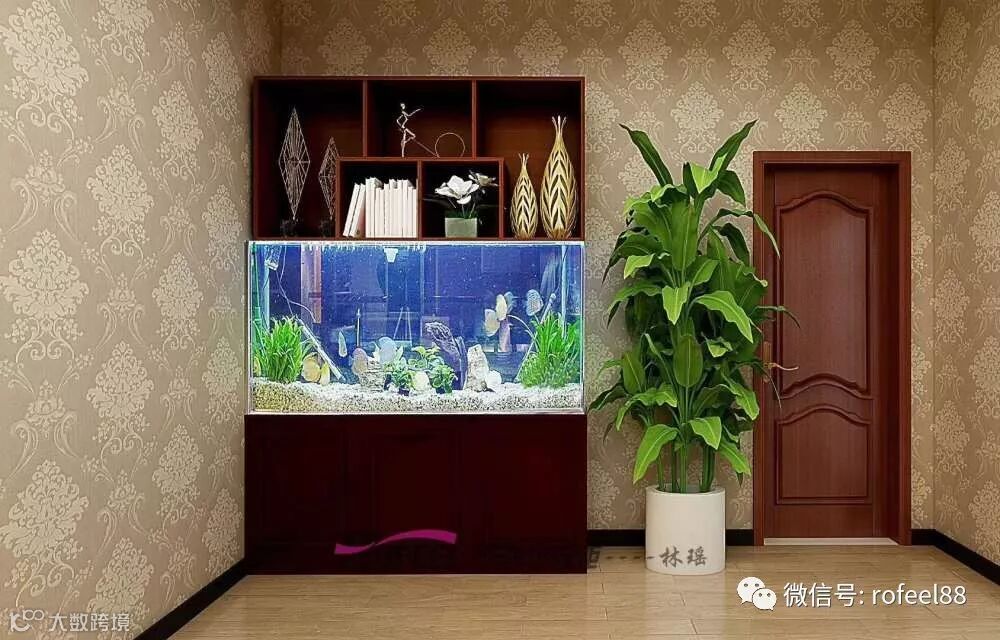 将鱼缸嵌入装饰柜里,也是一个很大的创意设计了。游鱼戏水,吐露珍珠,外加绿草点缀,俨然一派生机盎然。分分钟钟给家里的风水增益。