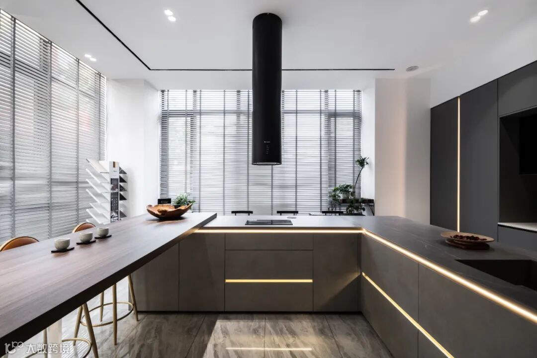 U型中岛 - Laminna岩板门板 · K型灯槽框 · 转角悍高功能五金 · 岩板一体水盆