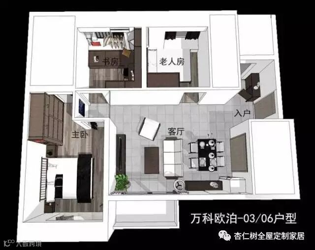 业主看书比较多,用的频率也是最大的房间(除了主卧)。因此业主要求距离主卧的距离更近一些,所以书房的位置选择在了目前这个位置,而不是老人房(正常现在作为老人房的房间应该是书房)。