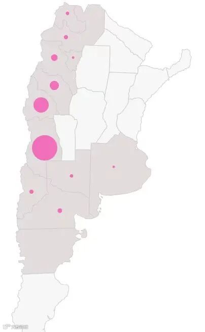 根据阿根廷国家葡萄栽培研究所(INV)的数据,阿根廷的西拉葡萄种植面积为 11108 公顷,占全国葡萄种植面积的 5.4%,具体分布如下:门多萨省 8085 公顷,圣胡安省 2091 公顷,其他省份约 931 公顷。西拉一直拥有一批忠实的追随者,近年来其受欢迎程度不断提高,尤其是在阿根廷。粉丝们对其黑胡椒、果肉和烟熏的香气赞不绝口。