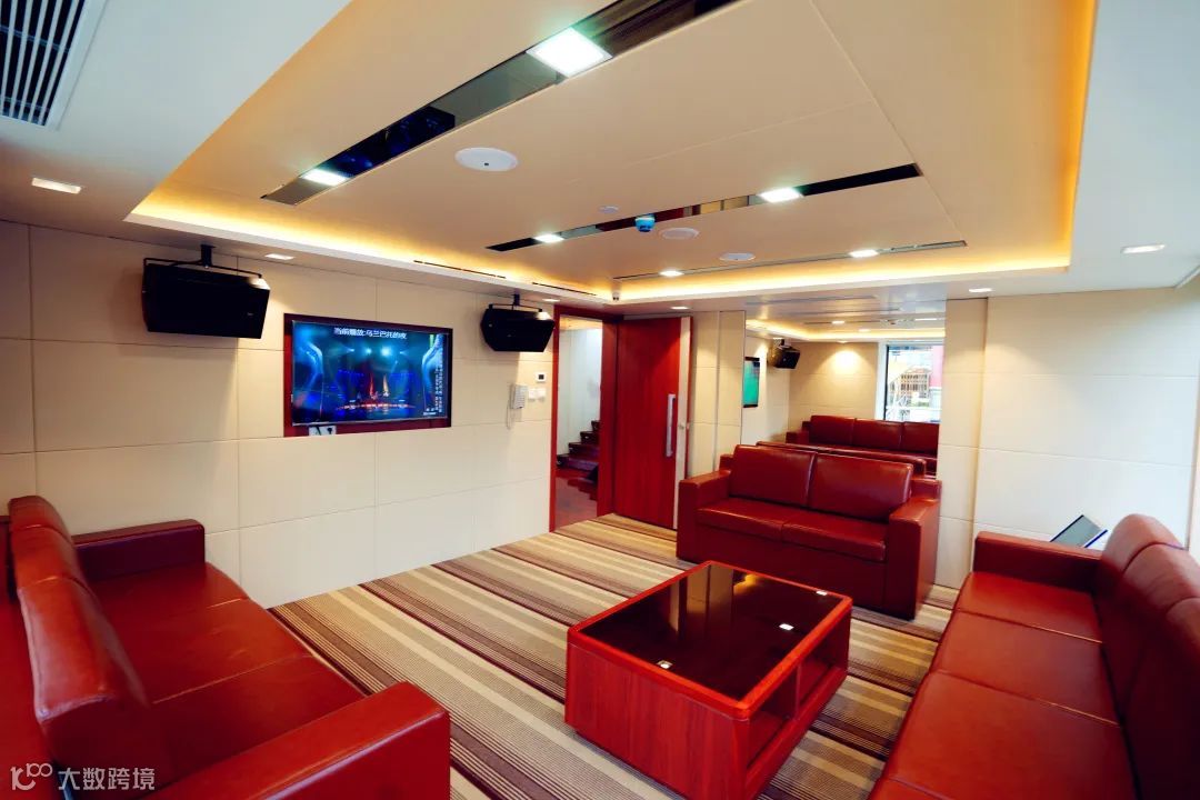 1)大厅采用跃式结构;2)高达5.3米的吊顶设计;3)180度玻璃幕墙观景视野;4)多盏LED变色灯、专属音响设备。