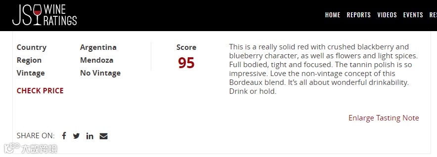 紧随其后的上市年份第6版(6ème Édition)入围James Suckling 2020阿根廷Top 100 #53.