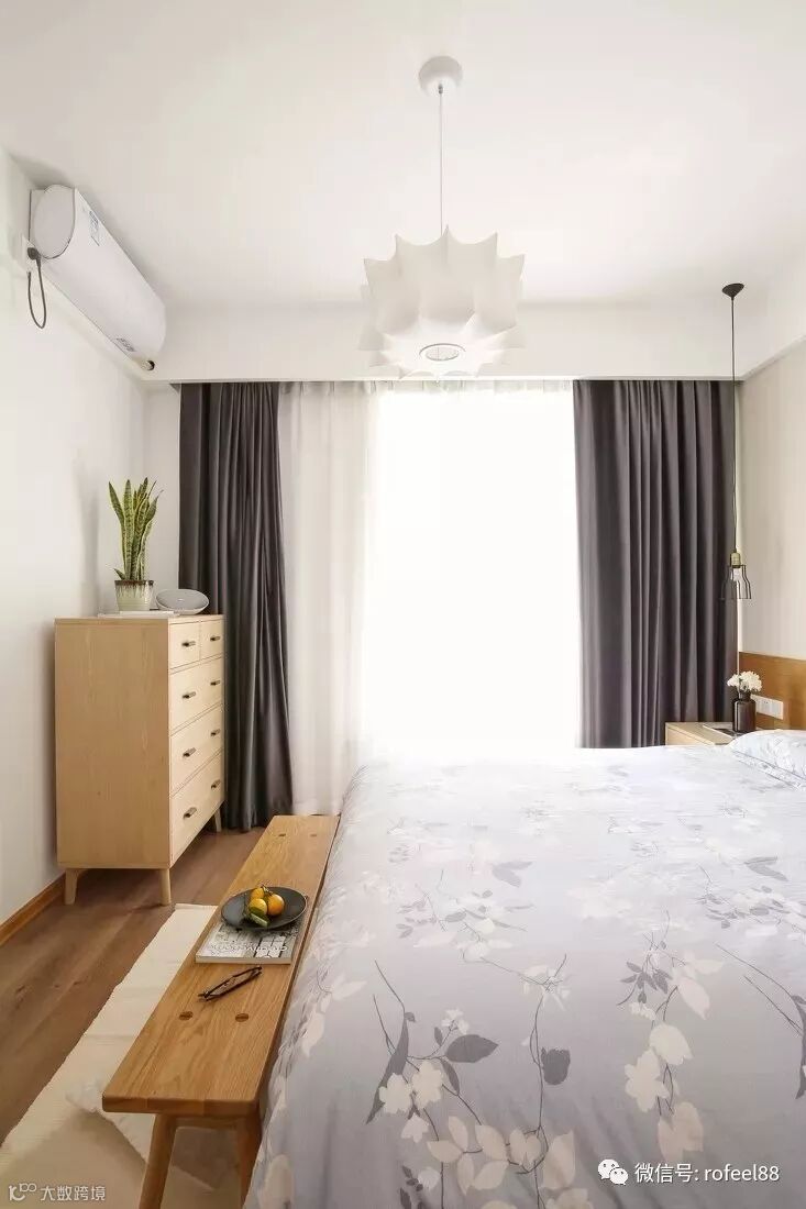 ▲ 卧室没有繁复华丽的花样与纹饰,偏重于原木色的用料。创造出一种自然简约的风范,充满了静谧、安宁之感。