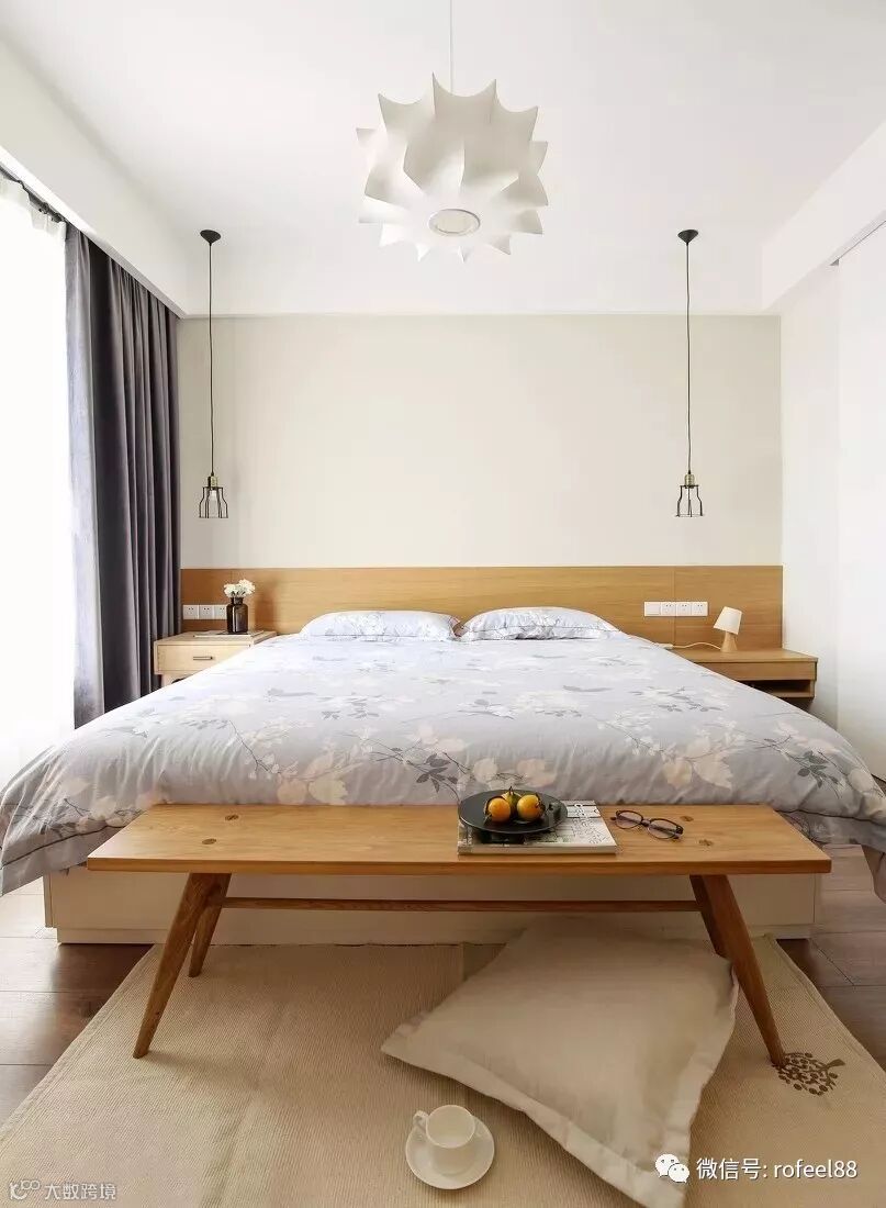 ▲ 利用原木的质地,让卧室多了一份理性的冷静,看起来素雅简洁,现代感十足。