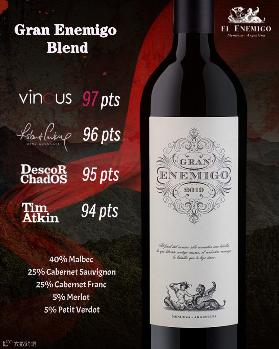 很高兴今天再跟大家分享一款Gran Enemigo系列的另一款新单品 —— Gran Enemigo Blend 2019。这是El Enemigo在其以品丽珠单一园为特色的Gran级别里的一款多品种混酿。众所周知,多品种混酿更像是一个艺术,混起来容易,是否能做到很好的平衡,则取决于酿酒师的水准。