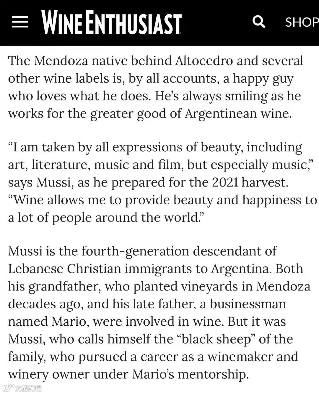 穆西是黎巴嫩到阿根廷的第四代后裔。他的祖父几十年前在门多萨种植了葡萄园,他已故的父亲马里奥(Mario)是一名酒商,他们都曾从事葡萄酒行业。但在父亲的指导下,自称是家族“败家子”的穆西,开始了酿酒师和酒厂管理者的职业生涯。
