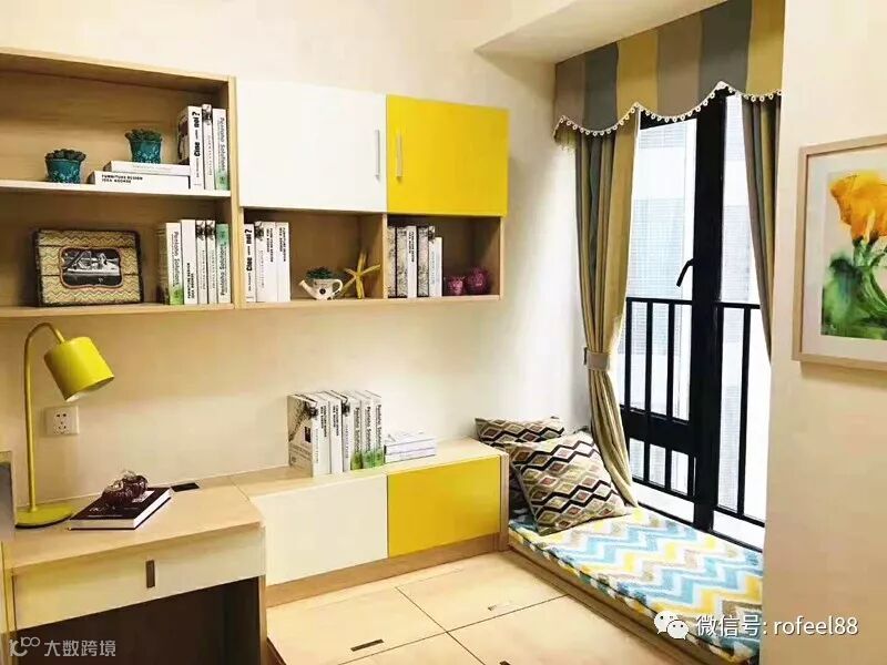 这两款家具都采用了柔和的暖木色。特别之处是使用了最近流行的撞色元素。活泼的亮黄色是让人看上一眼就会快乐的颜色,大范围使用会有点燥,在家居中适合做小范围的装饰和点睛,将宁静柔和的白色在大空间上作为打底,和小范围的明黄互相衬托,营造出一种活力快乐的氛围。