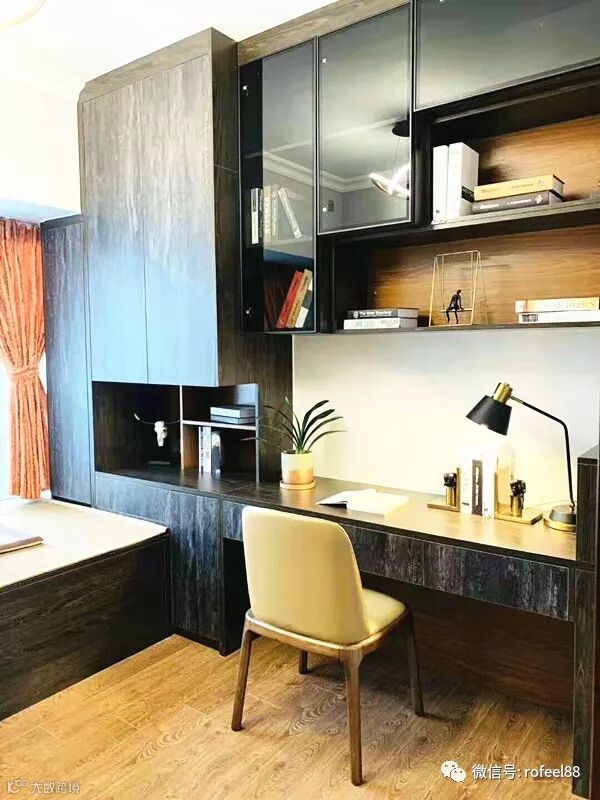 这款主要是采用金猪砖亚光饰面的挪威森林色板设计的榻榻米组合柜。正如图片所展示的,这种颜色不完全是黑色的,它是黑中带灰,灰中带白,所以看起来没那么沉闷那么古板。外加暖色台面,起到了整个柜子画龙点睛之笔。一杯茶,一本书,就这样坐着享受一个午后,尤为惬意。