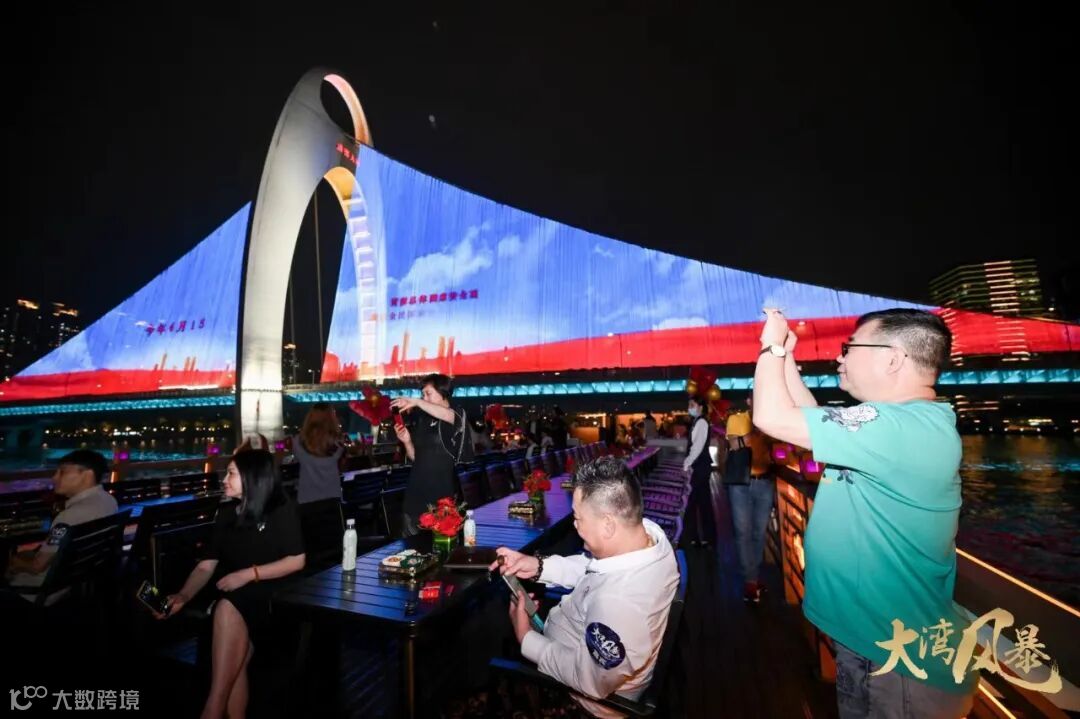 启动仪式当晚,《大湾风暴》电影信息惊艳亮相广州塔,并同步登陆武汉和重庆的地标大屏,向全球发出中国电影的声音。