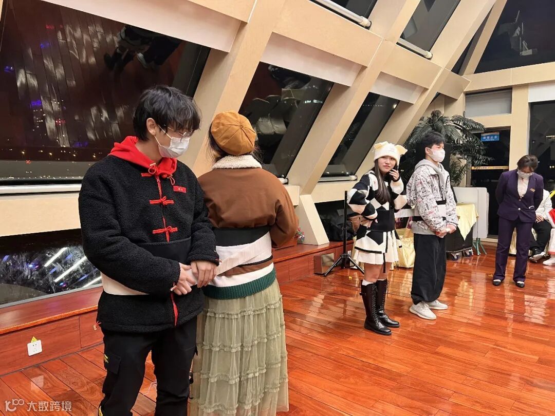 在珠江超美夜景的衬托下一起留下合影