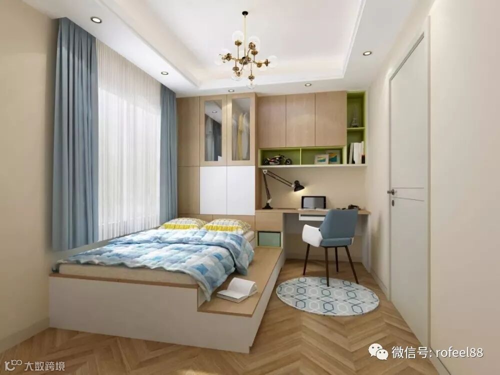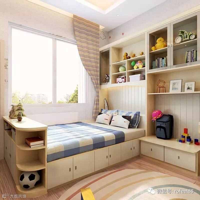 学生党衣物不多,但总有做不完的功课和无处安放的书籍,在卧室设置一体式的榻榻米连结着书柜书桌,更适合此时的骚年们。