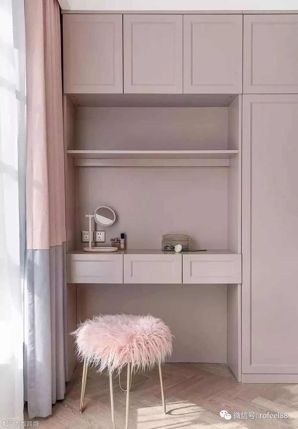 ▲床尾的梳妆区,集成在衣柜中,延续空间整体性。