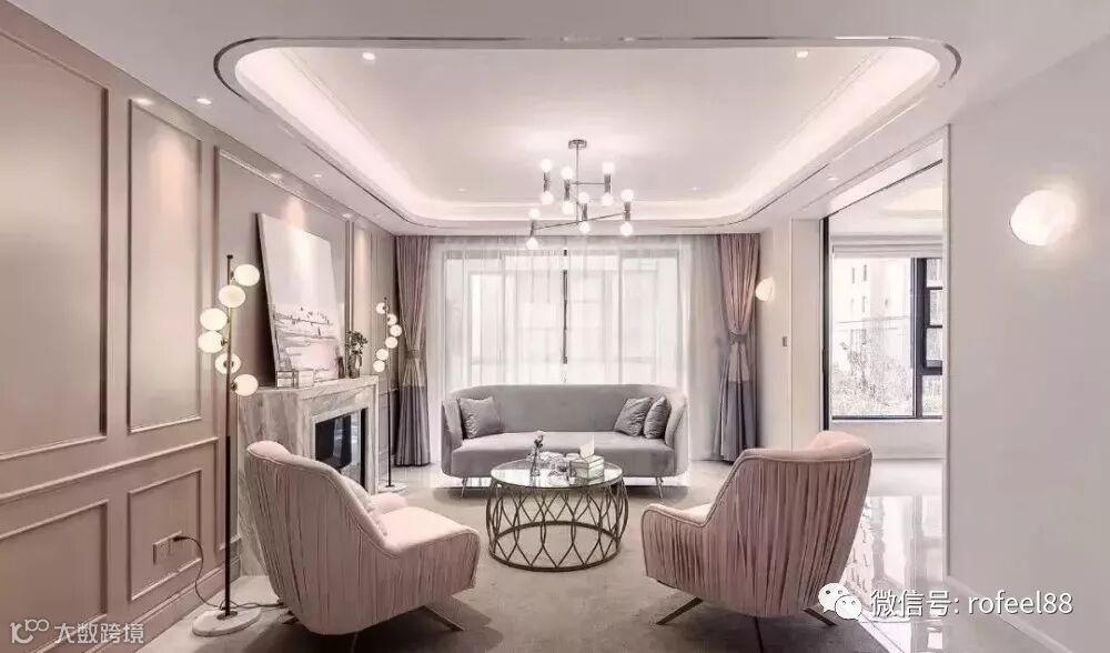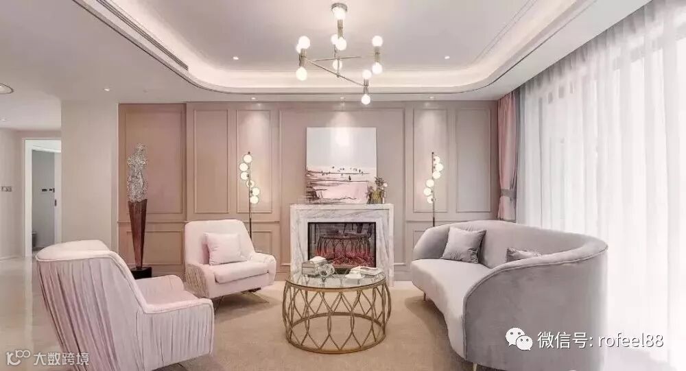 ▲客厅取消电视的摆放,以装饰画+壁炉代替,精美舒适。