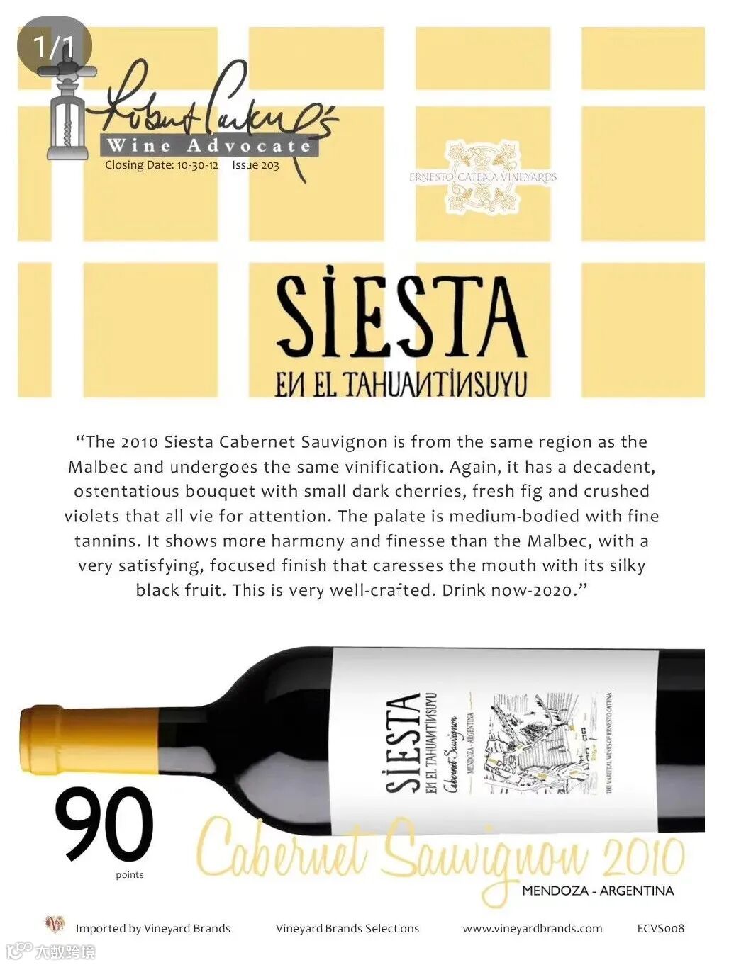 这就是塞斯塔(Siesta)系列,在法国和美国橡木桶中陈酿14个月,然后在瓶中再陈酿一年。强烈,复杂,优雅,塞斯塔系列是埃内斯托及其团队精心打造的单一品种系列,通过酒款表达着不同品种的个性,以及独特的Vista Flores风土特色。重瓶,质感,优秀的外观,展示着埃内斯托·卡帝那品牌一贯的高标准审美和对品质及质感的高要求。