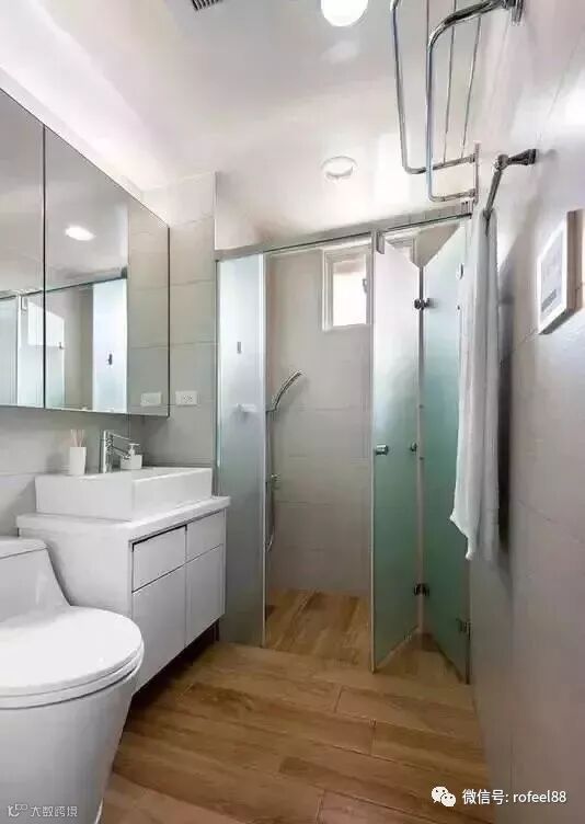 卫生间用折叠玻璃门做干湿分离,使用起来比较灵活,使原本狭小的空间也不再拥挤。