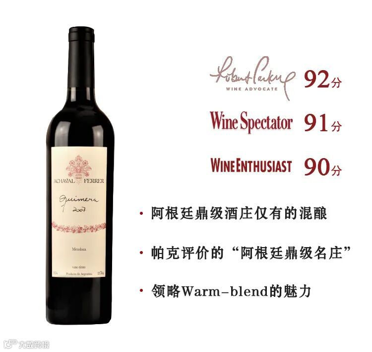 一款Achaval Ferrer Quimera 2007, 是由当年菲丽酒庄的阿根廷和意大利两个酿酒师团队一起精心打磨的以马尔贝克为主的Warm-blend。性价比优秀,只有品味过陈年的老酒,才能体验岁月打磨留下的痕迹,才能更细致地品味人生的真谛,也特意送给爱酒、懂酒的你。
