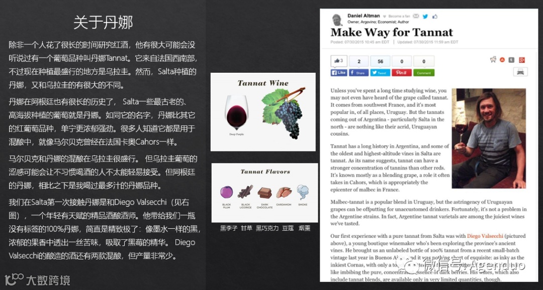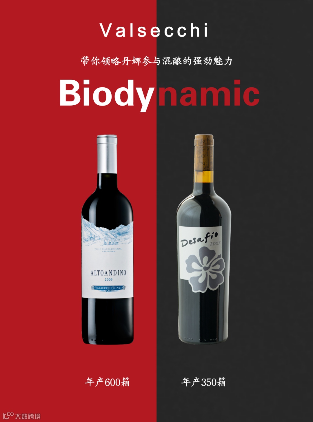 酒款主打高端,而且年产量非常稀少,很难拿到配额。其中酒款安得诺(ALTOANDINO)年产600箱,得莎菲(DESAFIO)年产则只有350箱。因为稀少,才更显得珍贵,所以在国内市场也是很多高净值有品味人士钟爱的酒款。最主要的特色还是Valsecchi很好的使用了丹娜这个品种,使其和马尔贝克外加赤霞珠的混酿(每年比例不同)格外地与众不同,口感异常强劲,结构复杂醇厚。因为使用了野生酵母,自然发酵,酒精含量都不低于15.6%,有些年份甚至高达17.3%。所有的葡萄酒都是在新的法国橡木桶中陈酿,时间从18个月到30个月不等。