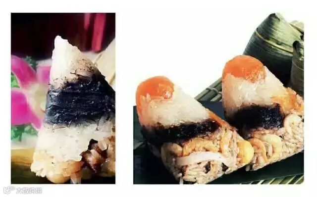 鸳鸯粽的好味道主要在于馅,而且它的馅真的不是一般的丰富。咸馅主要是咸蛋仁、虾米、香菇、莲子、栗子等;甜馅主要是红豆沙馅和甜糯米。