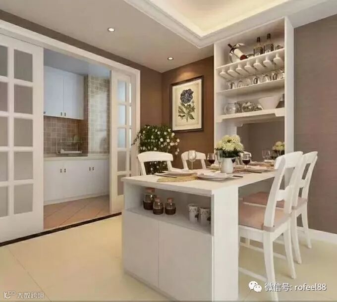 现在很多都是双厅一体设计,如果餐厅空间难以划分出独立的大区域,或者买来的餐桌与客厅家具难以搭配,不妨试试餐边柜餐桌一体化,搭配成套,不仅美观,还增加收纳度。