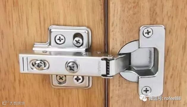 4、铰链:铰链就是我们俗称的合页,担负着连接柜体和门板的重要责任,在平时衣柜使用的五金中,经受考验最多的就是铰链。