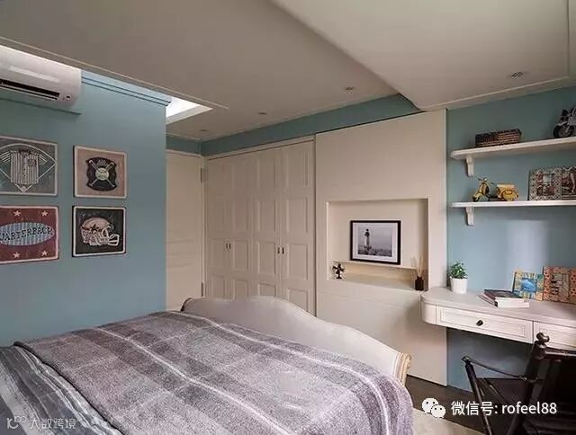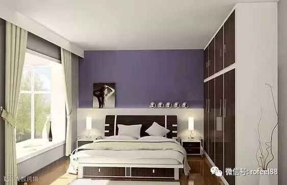 因为卧室的采光相对有限,在墙面的色彩上要挑选对比明亮的色彩。冷色调即是不错的挑选,能够扩大视觉上的空间面积。