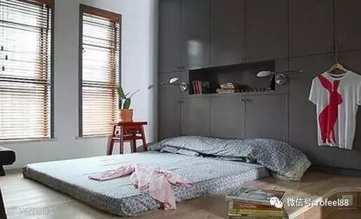 舍弃床框、床头,可在地台上直接放置垫子,没有床头不意味着在床上看书无所依傍,多个厚厚的靠包能够让你想怎样舒畅就怎样来。最主要的是,床两头靠墙,心理上愈加放松和安全。
