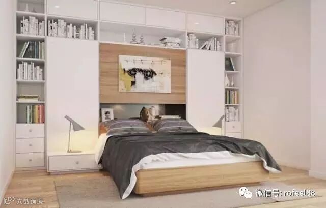 灵活的设计拼搭,不仅在需求上能给予最大的满足,在造型上还能带来新鲜感,床头和背景融为一体,超级省空间。