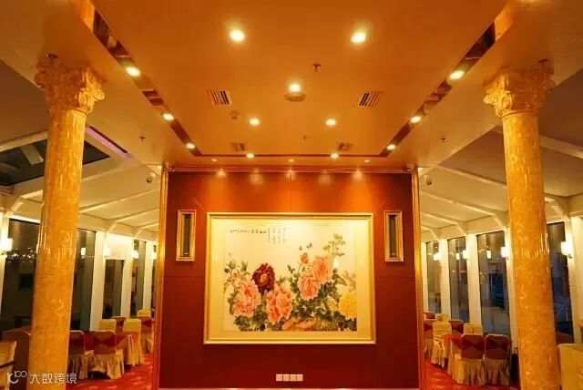 与正中间“引来无数赏花客”牡丹国画相互照应,对每个游客产生巨大的视觉冲击效果,定能使游客流连忘返。