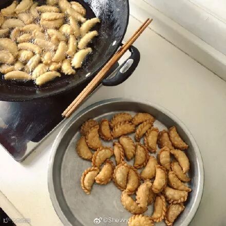 还有里面塞满果仁,外面黏上芝麻的脆脆煎堆
