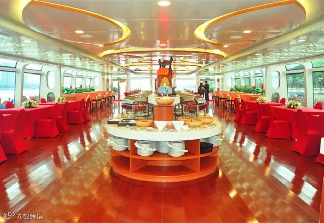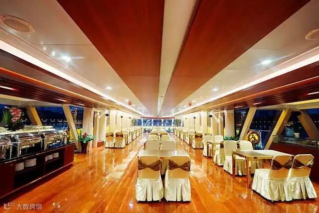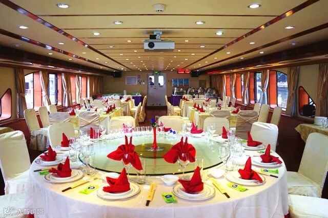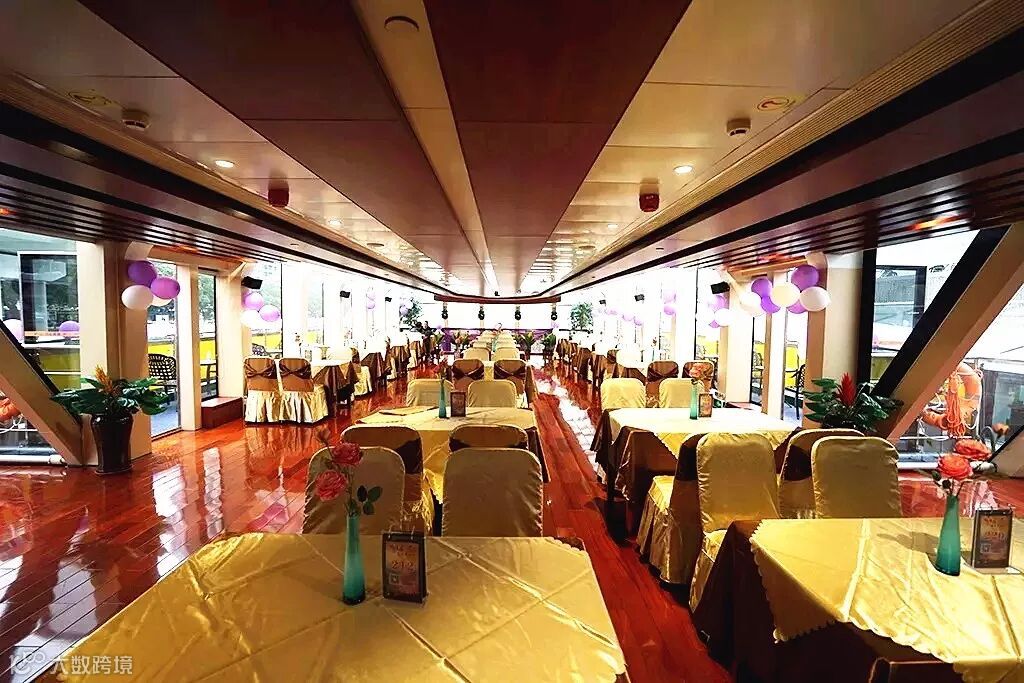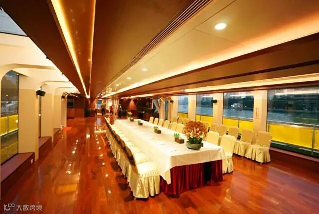一层大厅可容纳160人,高达5.3米的高吊顶设计,让您的年会拥有无尽可能,四周180度玻璃幕墙观景视野,随着游船的移动,窗外景观不停变换,将年会变成一场生动的旅行,与众不同,才能让人铭记!
