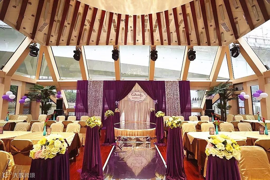 不同风格的婚礼主题,配合不同的布置,宛如置身在各种奇妙的场景当中!游船移动,夜景随着新人出场而不停变换,就像童话中的王子与公主般,捕捉玻璃幕墙下那触手可及的幸福。