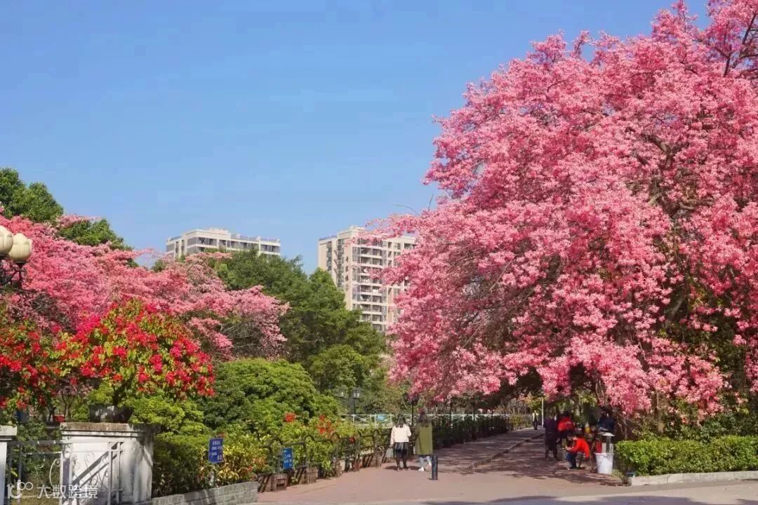 每年秋季正是广州异木棉花盛开的季节。满城的异木棉争相怒放,满树姹紫嫣红,美得可以说是360°无死角了。