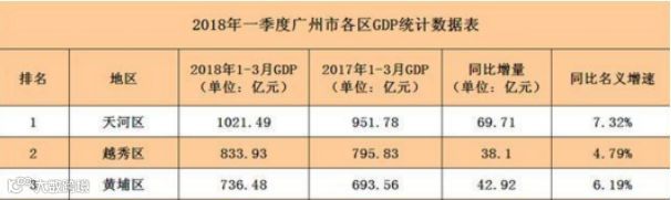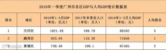 天河区一季度人均GDP 60162元,居第三位。
