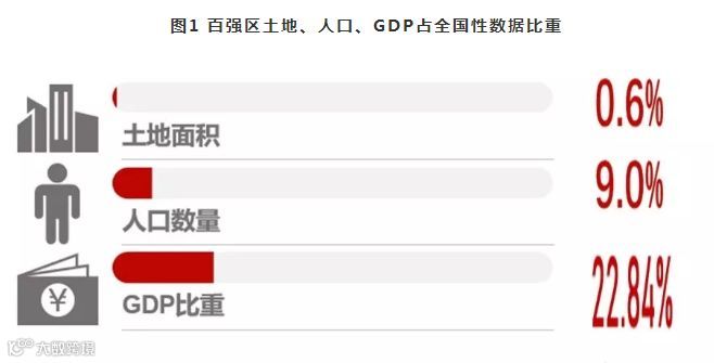 换言之,百强区以占全国0.6%的的土地面积,9%的人口1.2亿人创造了全国近四分之一的GDP已经成为我国城市经济乃至国民经济重要的支撑部分,引领经济发展的头部力量。