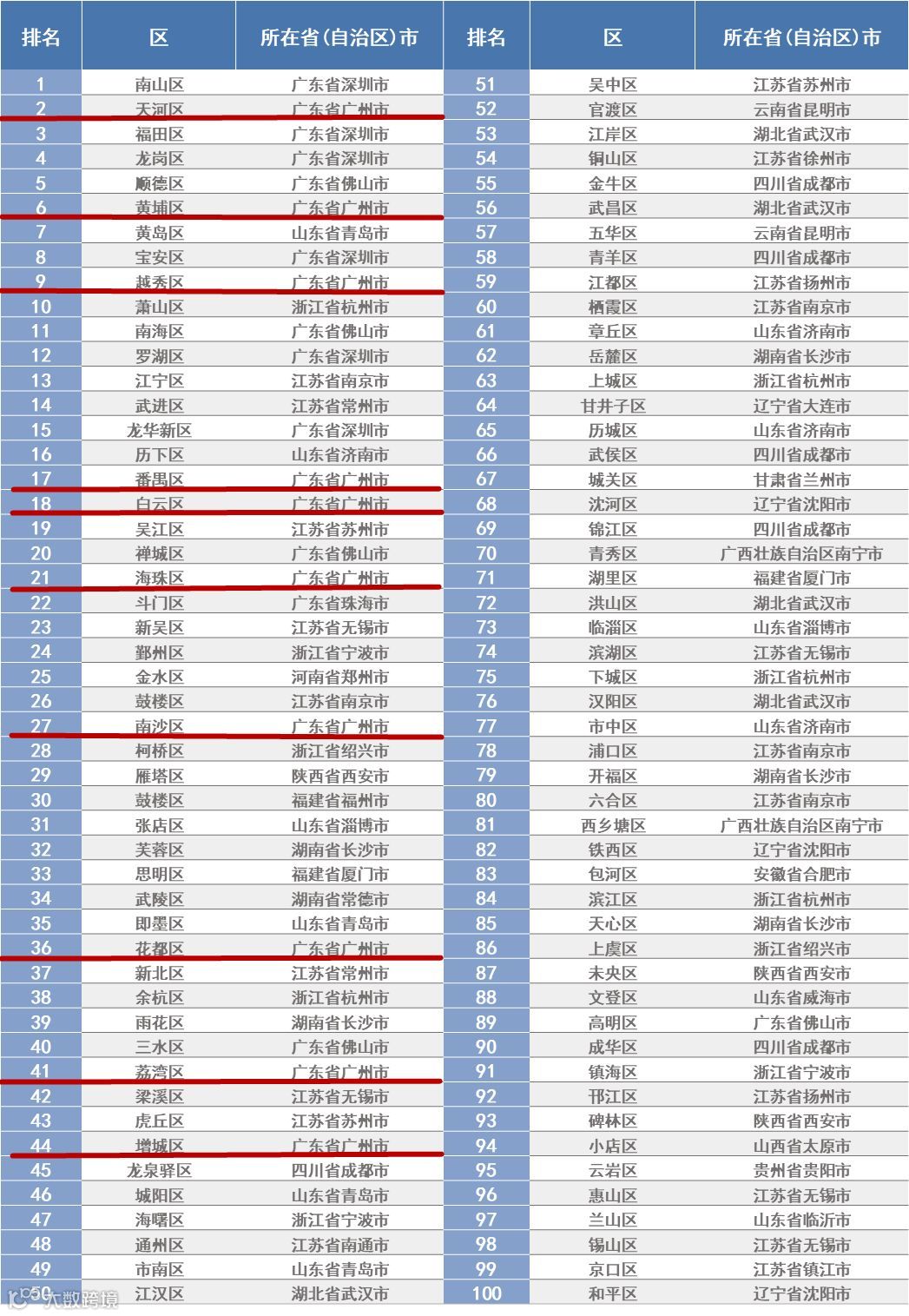 广州共有10个区上榜
