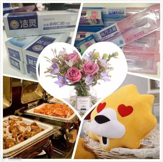 礼包包含:七夕自助餐船票2张、泰笛鲜花卡(可免费配送鲜花到家)、德伦牙膏套装及洗牙优惠券、苏宁精美礼品
