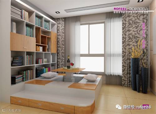 具有超强空间利用性的榻榻米,既是床,桌子又是书柜兼收纳柜,几平米的空间也能发挥出几十平米的储物价值。