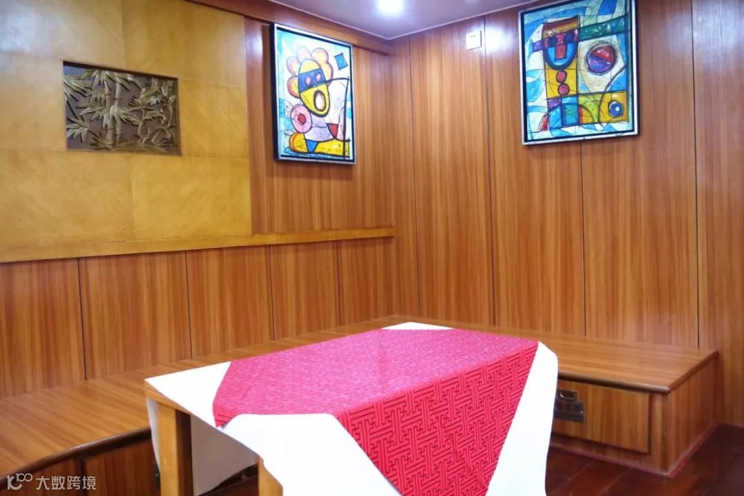 船上设有吧台、备餐间、洗手间,同时设有3间包房,分别是20客位“牡丹”和两间10客位的“玫瑰”、“莲花”,可提供餐饮、卡拉OK等多项服务。