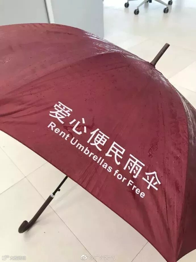 广州地铁有爱心便民雨伞,只要支付押金20元就能免费借。