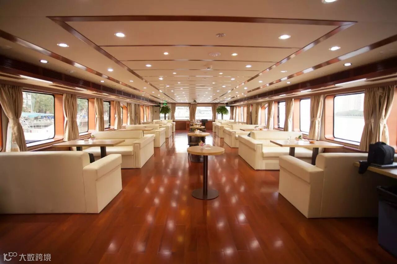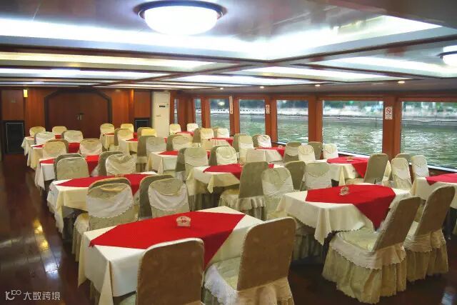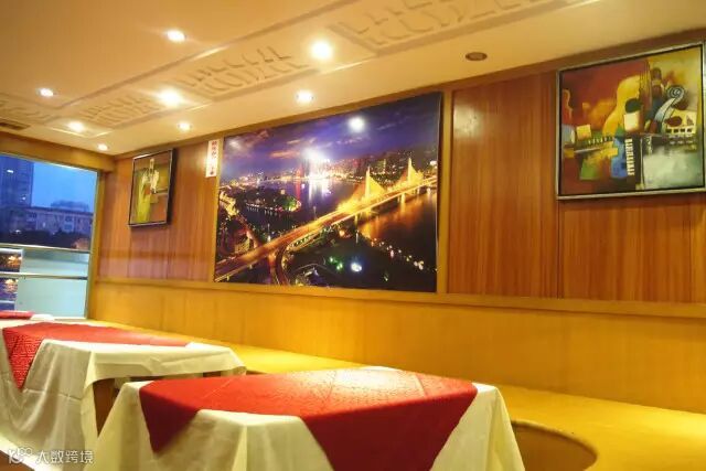 独特性:是250客位三层豪华游船,该船整体以中式建筑设计风格为主,装饰具有浓厚的广州西关风情。二楼提供豪华西式套餐。三楼露台空间大视野开阔,让您无论身在何处,目所能及之处都是美丽的江景。