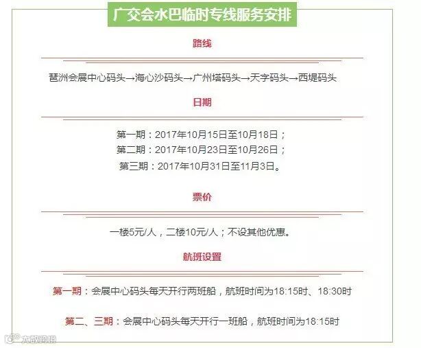 广交会期间,会展中心码头增设水巴线路,距离广交会展馆仅5分钟路程,可直达天字码头珠江夜游啦!