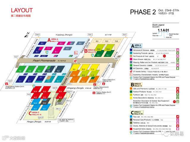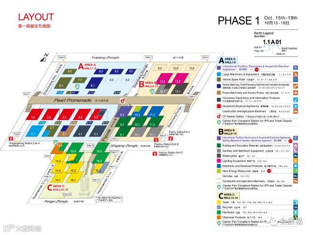 第一期 2017年10月15日-19日,展览展区包括电子及家电类、照明类、车辆及配件类、机械类、五金工具类、建材类、化工产品类、能源类和进口展区。