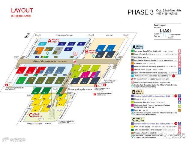 第三期 2017年10月31日-11月4日,纺织服装类、鞋类、办公、箱包及休闲用品类、医药及医疗保健类、食品类和进口展区。